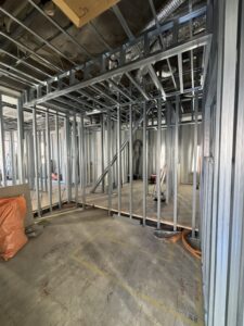 配管の次に重要なのが、床あげと骨組み(軽鉄)で空間の輪郭ができる工程です。